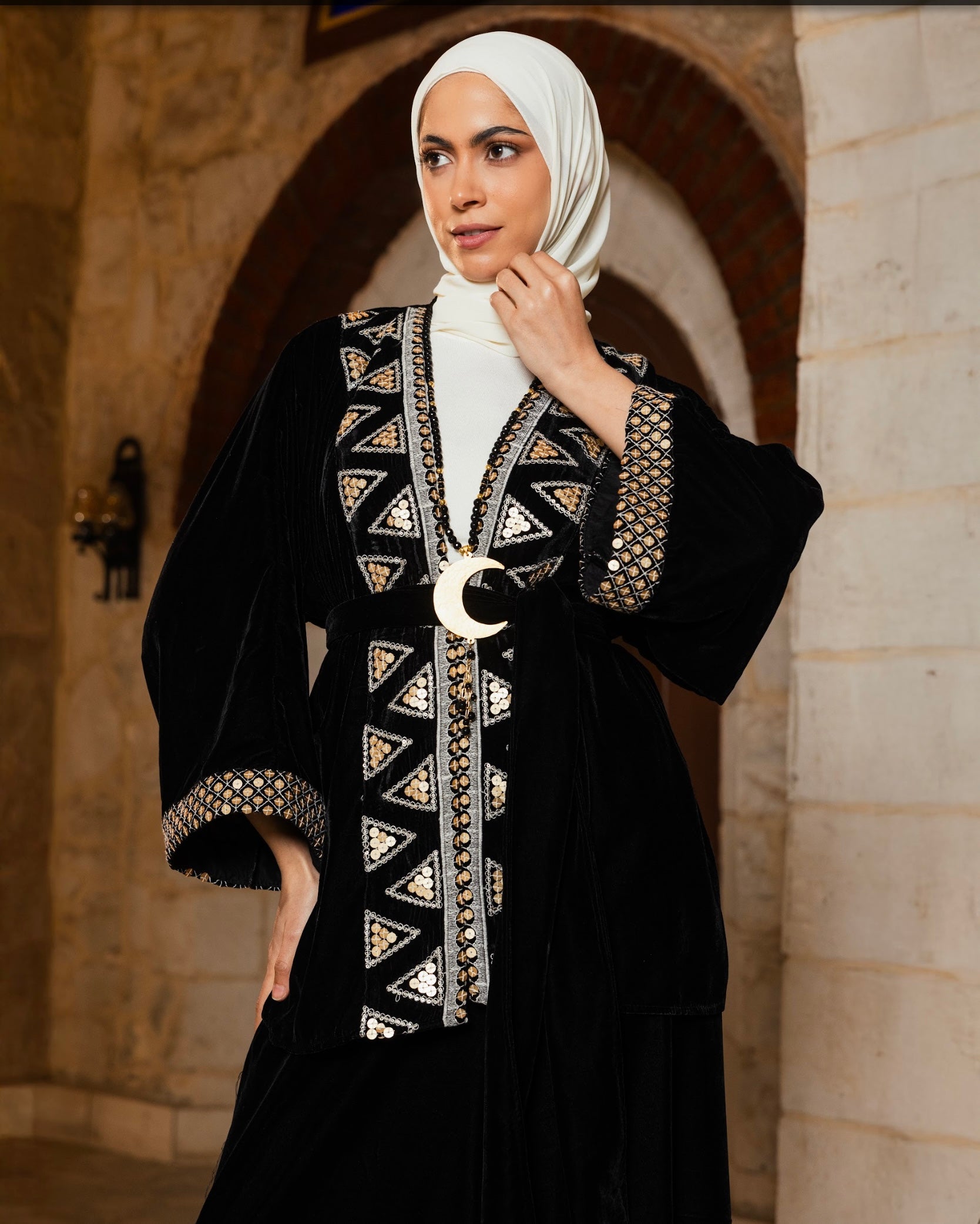 Introducing the Jouri Cardigan 01, a sumptuous embrace of Silk velvet adorned with exquisite embroidery. This elegantly flowy cardigan offers unparalleled comfort, making it an ideal companion for the gentle breezes of the season and the serene moments of Ramadan.