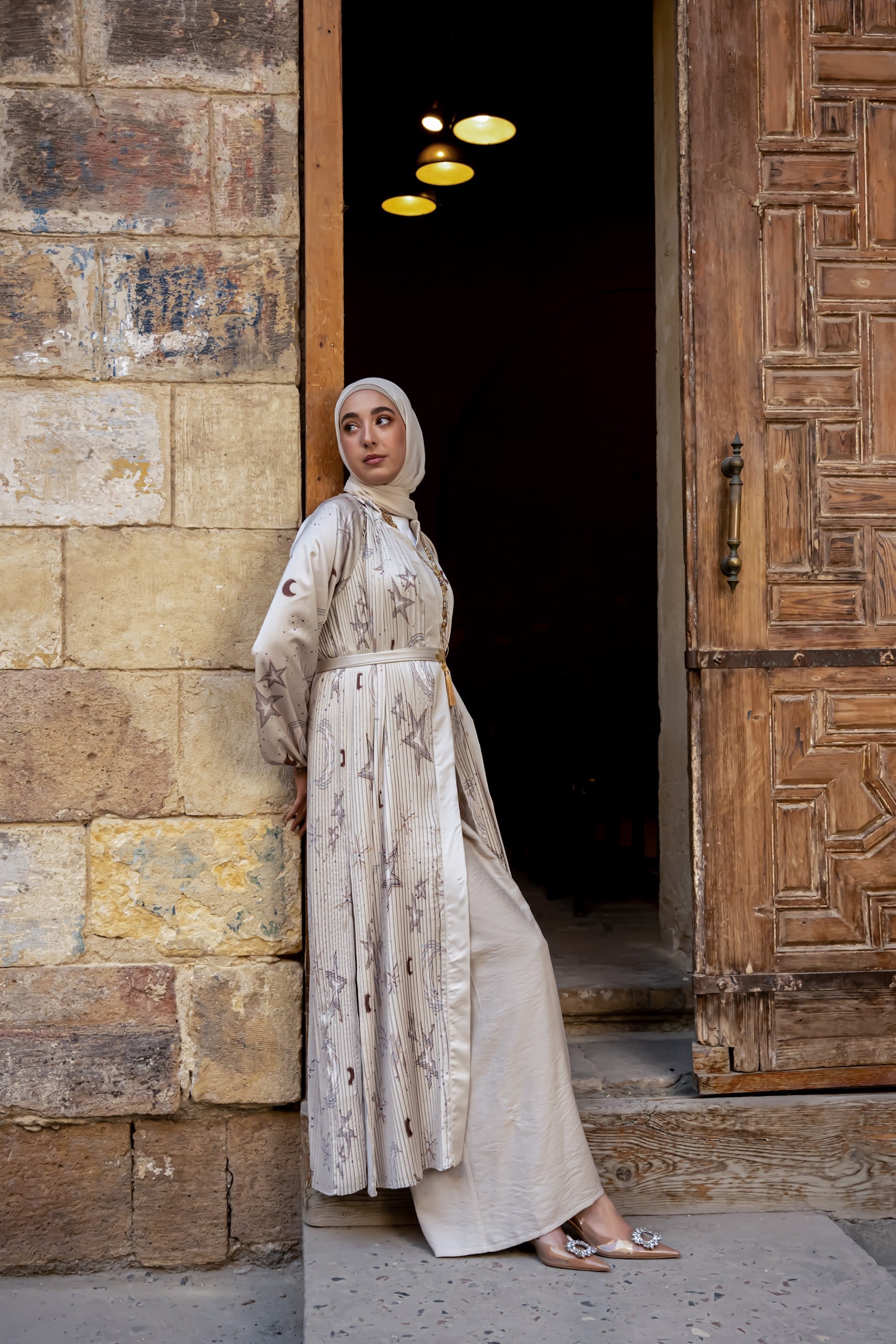 A mesmerizing design, pleats and flattering fit, put simply our Najam Cardigan is iconic. Comes in beige and olive green