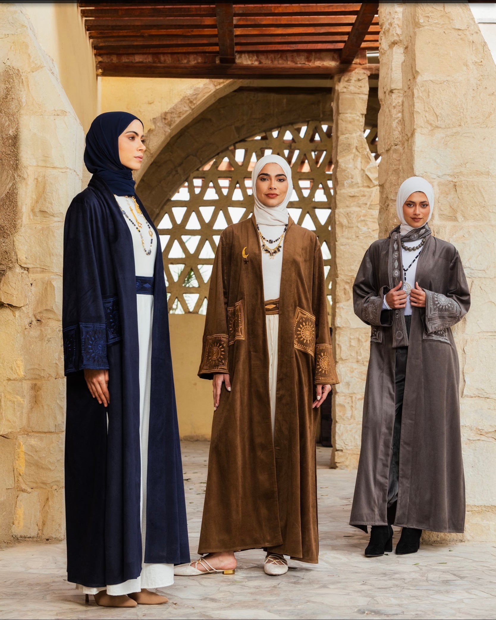 The Ruya Cardigan is crafted from high-quality, suede textured fabric, offering warmth and comfort. Its unique style features intricate embroidery, making it a sophisticated choice for those with a chic aesthetic. Available in grey, navy, and goldish, it enhances versatility in any wardrobe.